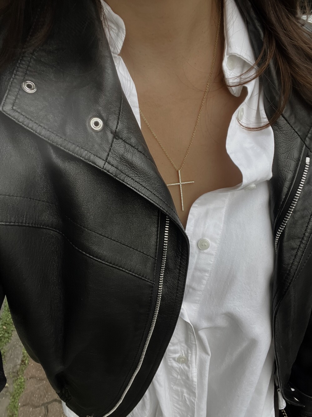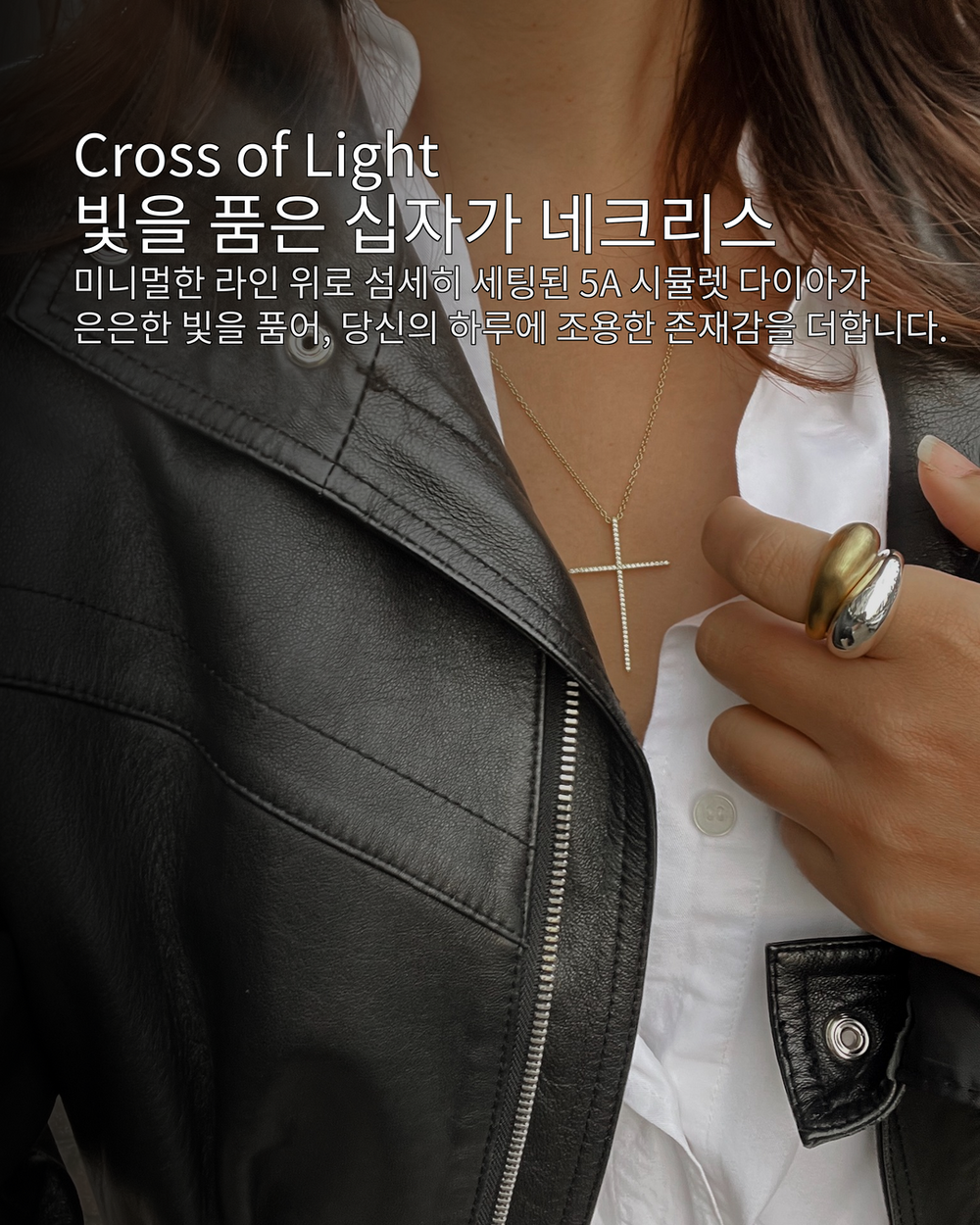 클래식한 직선 비율의 프레임에 최상급 5A 지르코니아를 촘촘히 세팅한 리즈 주얼리의 크로스 네크리스입니다. 작은 움직임에도 섬세하게 반사되는 미세한 파베 광채가 목선에 우아한 포인트를 더합니다. 베이스는 실버925, 표면은 골드 또는 백금(Platinum) 도금으로 컬러 안정성과 고급스러운 광택을 오래 유지합니다.