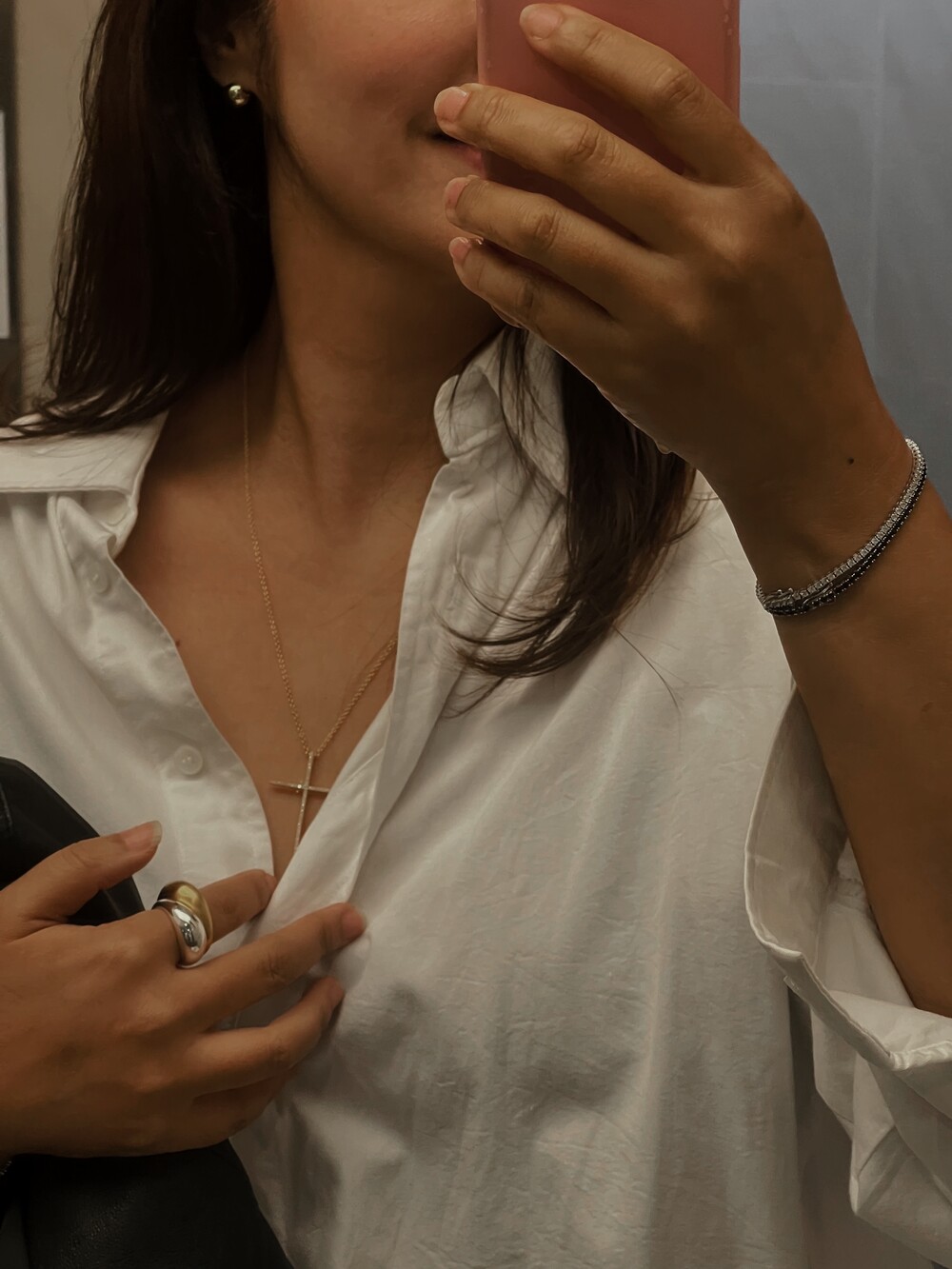 셔츠·재킷 사이로 단독 착용하면 미니멀하면서도 선명한 포인트가 됩니다. 얇은 체인·펜던트와 레이어드하여 깊이를 더하거나, 리즈의 테니스 팔찌/솔리테어 이어링과 셋업하면 완성도 높은 럭셔리 룩을 연출할 수 있습니다.